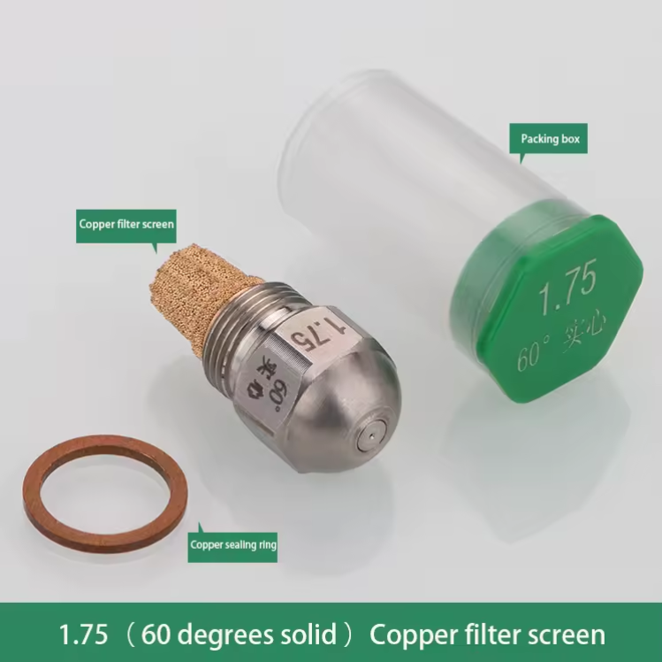 Nozzle Pembakar Minyak Limbah Stainless Steel 9/16 ini terbuat dari Stainless Steel 304 yang tahan lama, tahan terhadap asam, alkali, dan korosi. Ini memiliki filter pasir tembaga, atomisasi yang sangat baik dengan sudut 80 derajat, dan disegel dengan paking tembaga untuk pemasangan mudah tanpa pita PTFE. Cocok untuk aplikasi metanol, air, dan bensin. Disertifikasi oleh CE, memastikan kepatuhan terhadap standar keselamatan UE dan menyediakan akses pasar.